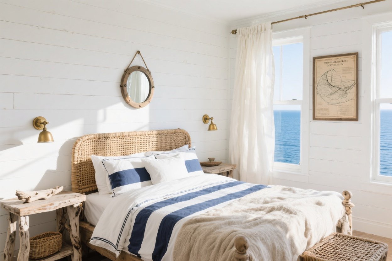 Materials make the mood. Think weathered wood, rope, brass, and seagrass—timeless elements that whisper maritime, not shout it.