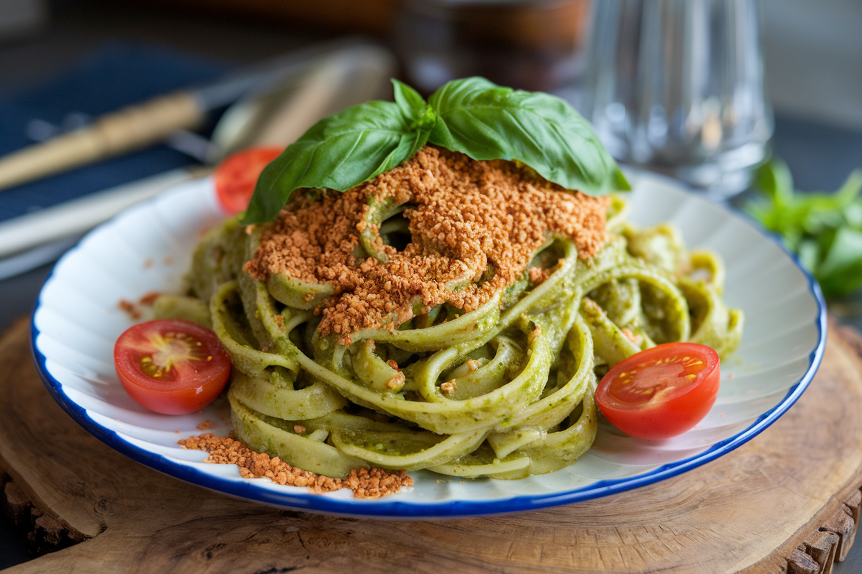 You want a meal that’s fast, flavorful, and makes you look like you’ve got your life together. Pesto pasta delivers, but we’re not stopping there. Add nutritional yeast, and suddenly this dish goes from “meh” to “more, please.” No fancy skills required—just a pot, a blender, and minimal effort.