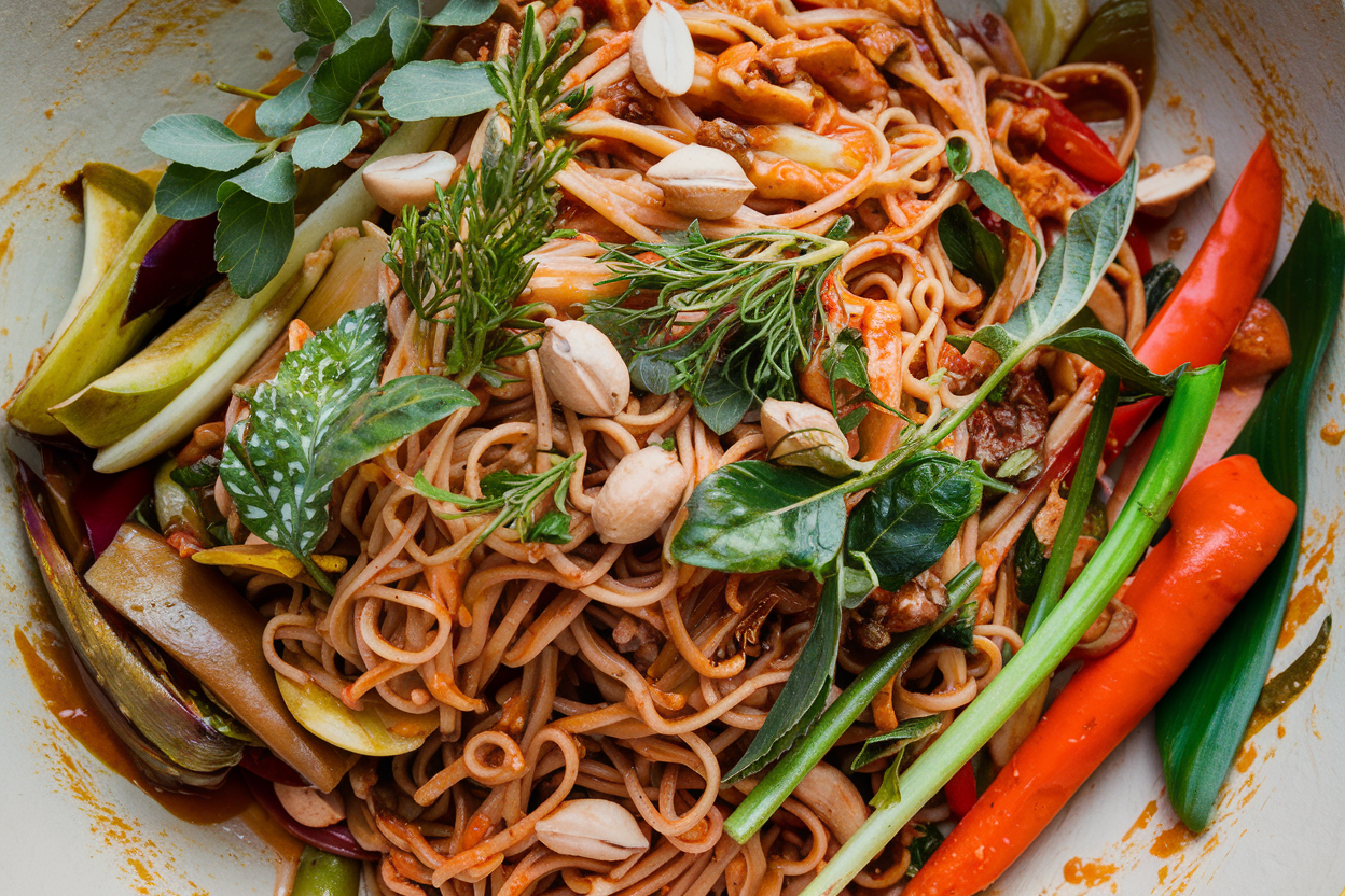 This isn’t just another noodle dish. It’s a flavor bomb with a perfect balance of spicy, savory, and slightly sweet. The peanut sauce clings to every noodle, while veggies add crunch and freshness.